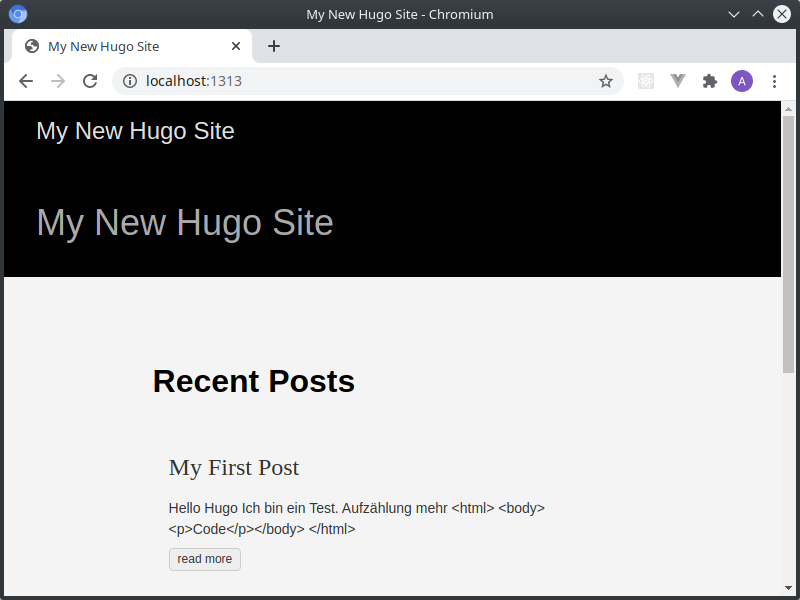 Diese Einschränkung gefällt mir nicht! Da ich Hugo ja erstmal ausprobieren möchte, verwende ich hier ausschließlich mein /tmp-Verzeichnis.